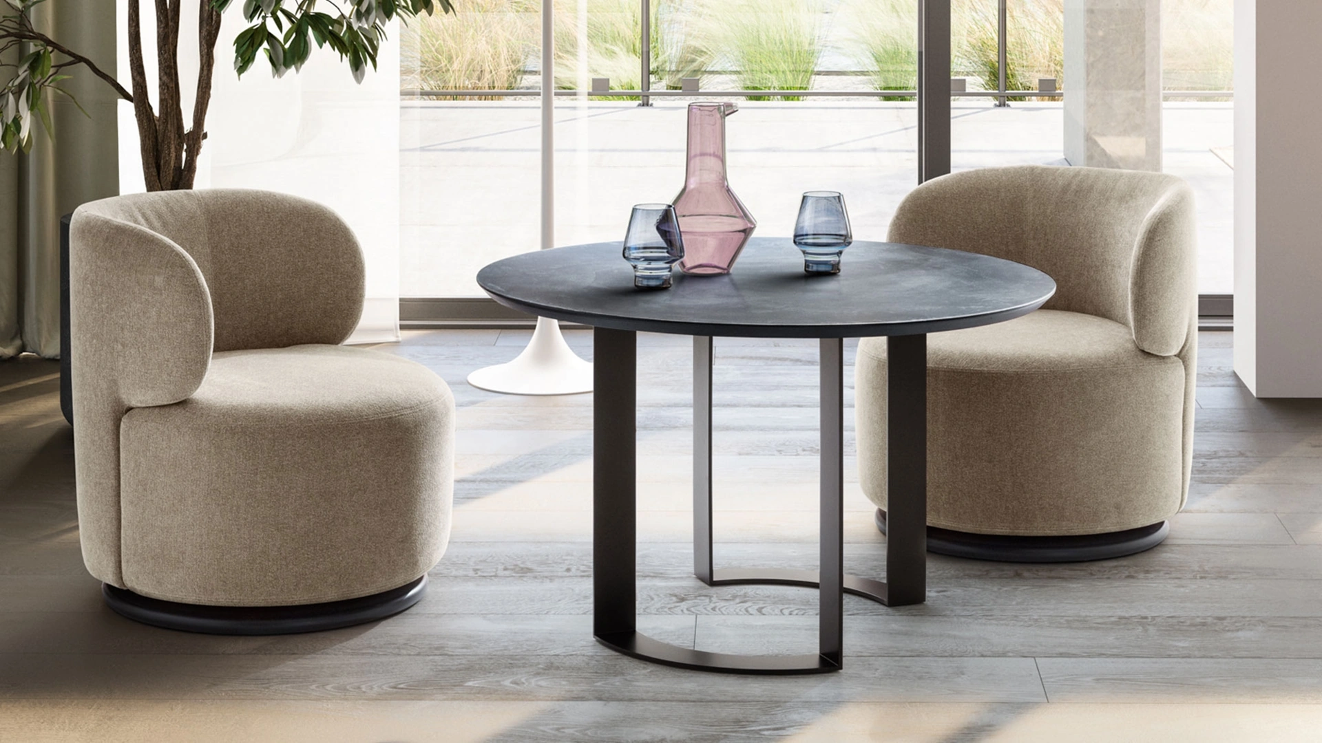 Complementi e tavolini completano l'arredo di casa, occupando lo spazio in maniera utile e rendendolo assai funzionale e di grande valore estetico. Le composizioni arredative di charme del marchio Twils arredano l'ambiente con i loro colori e gusto, ricreando peculiari atmosfere arredative. Nel nostro showroom potrai vedere dal vivo la qualità dei modelli di tavolini moderni in materico del brand, proprio come questa soluzione in foto. Tavolino Otto Breakfast di Twils in materico: conferirà carattere e fascino a un locale ammobiliato con mobili e complementi dai richiami moderni.