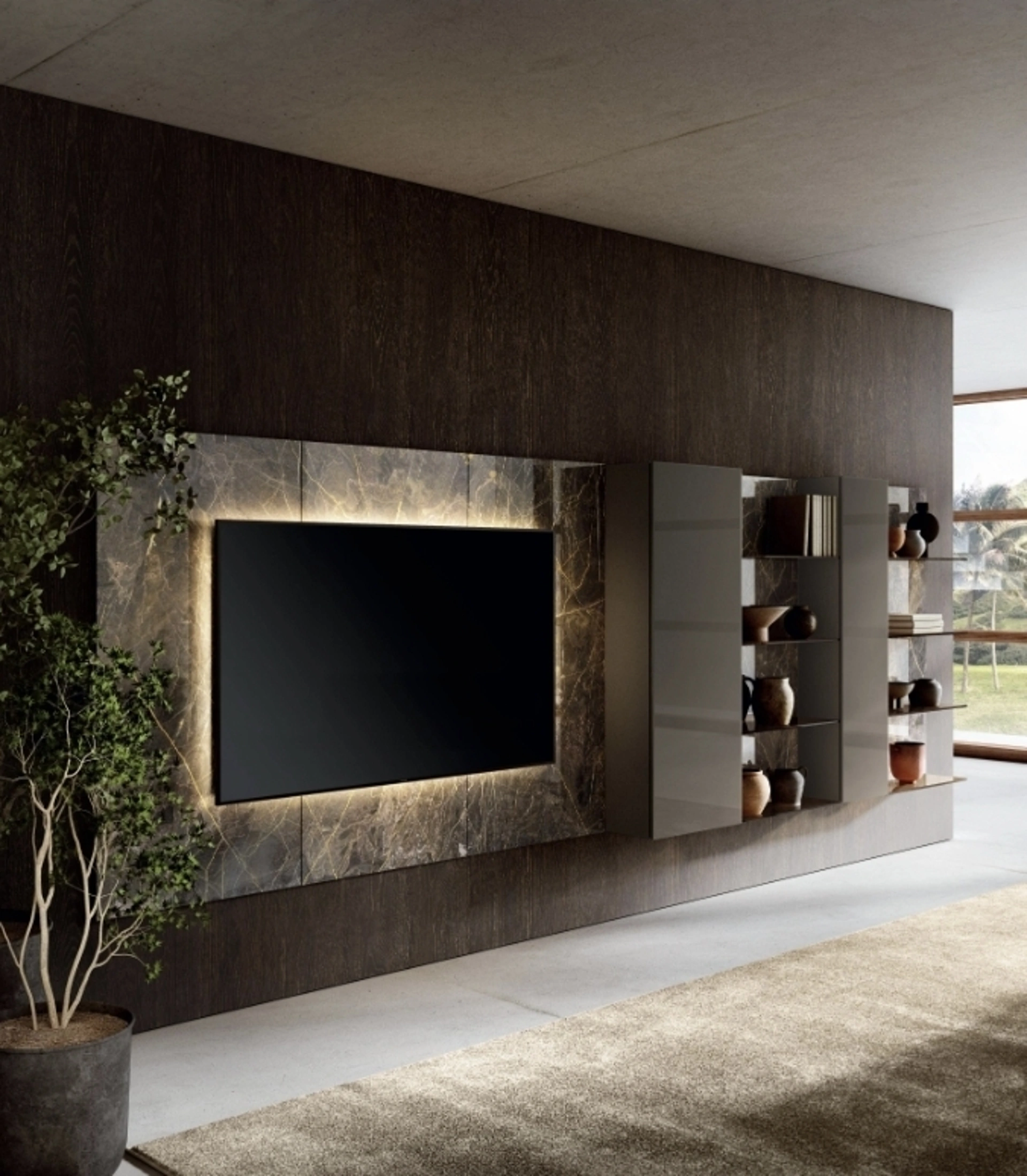 La Parete Attrezzata 36e8 2156 di Lago nella fotografia, con finitura in vetro, risolve le più particolari problematiche abitative di spazio e stile senza rinunciare alla ricerca stilistica. Un po’ librerie, un po’ mobili contenitori ed espositori: le Pareti Attrezzate sono ideali per organizzare uno spazio pratico e dinamico. Anche in un soggiorno non generoso, questo tipo di arredo riesce a ottimizzare gli spazi valorizzando ogni angolo e garantendo componibilità personalizzabile tipica delle soluzioni moderne. Questa proposta rappresenta tutta l'eccellenza che il brand assicura grazie a pluriennale competenza e grande dedizione nel campo dell'arredo e del design.